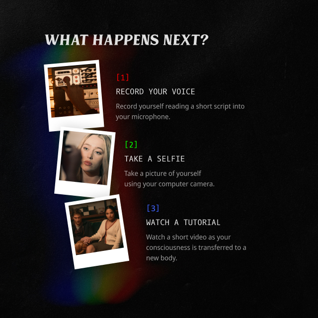The pseudogänger concept invites visitors to explore identity by interacting with each other as someone else, blurring the lines between reality and digital personas. It echoes the film’s unsettling themes of artificial intimacy and identity distortion.