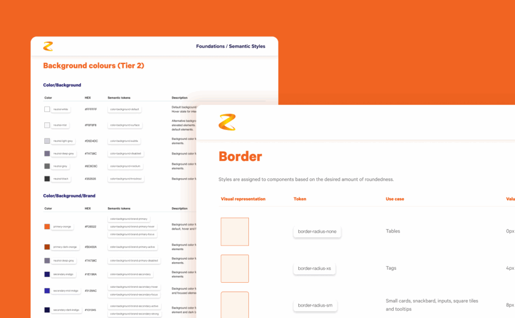 The Figma design system was rebuilt with true theming capabilities using variables. The Storybook component library was synchronised, refactoring existing components to align with new naming conventions.